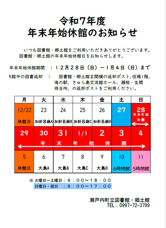 2025年12月28日(日)から2026年1月5日(月)まで休館